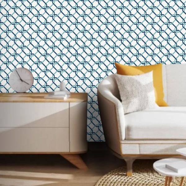 Papel de Parede Geométrico Tons de Azul Rolo com 10 Metros