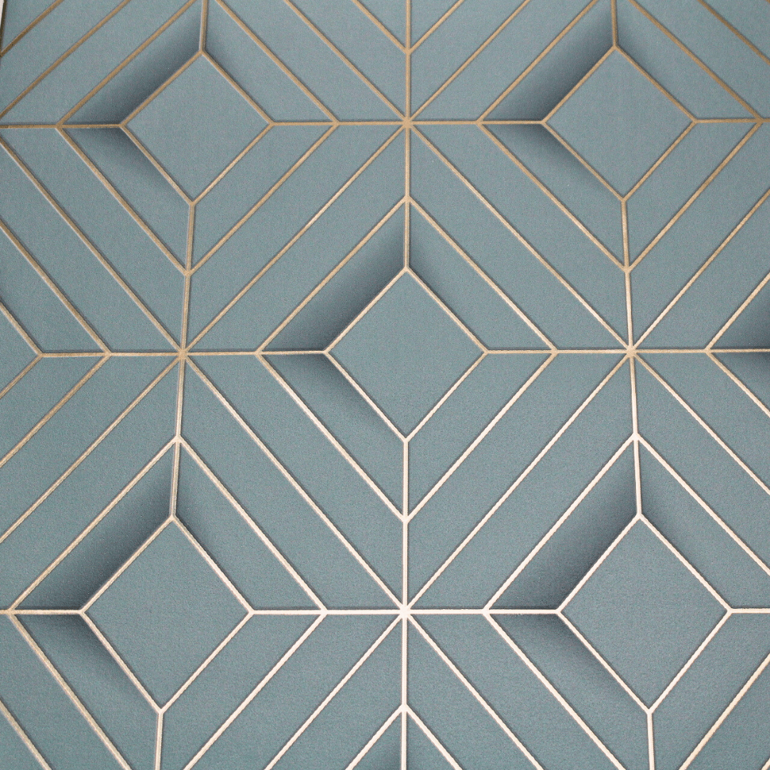 Papel de Parede Geométrico Tons de Verde Água Rolo com 10 Metros