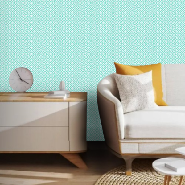 Papel de Parede Importado Geométrico Azul Turquesa com 10 Metros